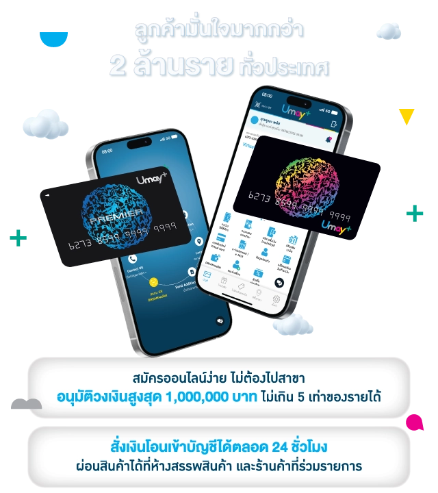 สำหรับบัตรกดเงินสดยูเมะพลัส - รายได้ประจำตั้งแต่ 20,000 บาทขึ้นไป