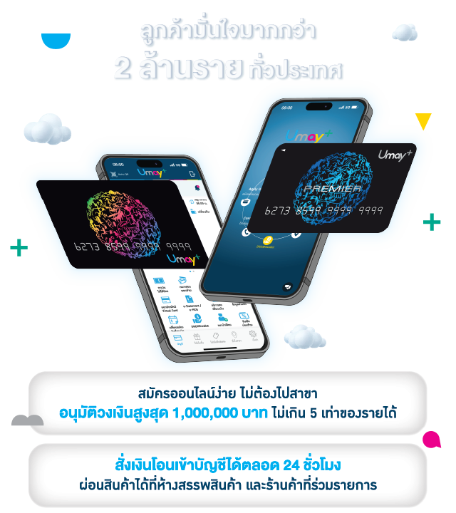 สำหรับบัตรกดเงินสดยูเมะพลัสพรีเมียร์ - พนักงานผู้มีรายได้ประจำตั้งแต่ 20,000 บาทขึ้นไป