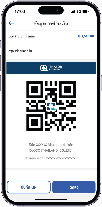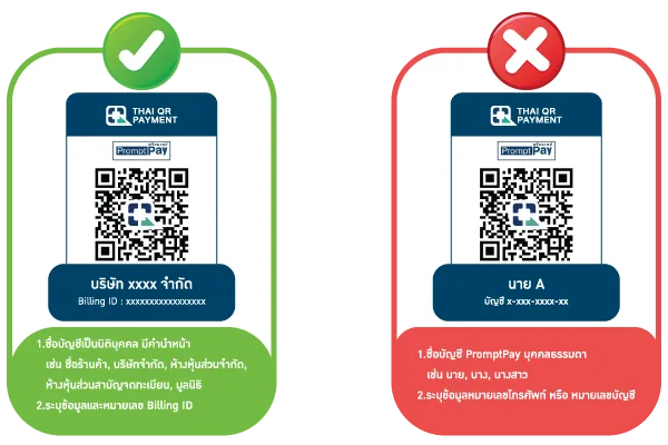 - QR ที่สามารถสแกนจ่ายได้ จะแสดงเป็นชื่อร้านค้า หรือชื่อบริษัทใต้ QR พร้อมระบุหมายเลข Billing ID