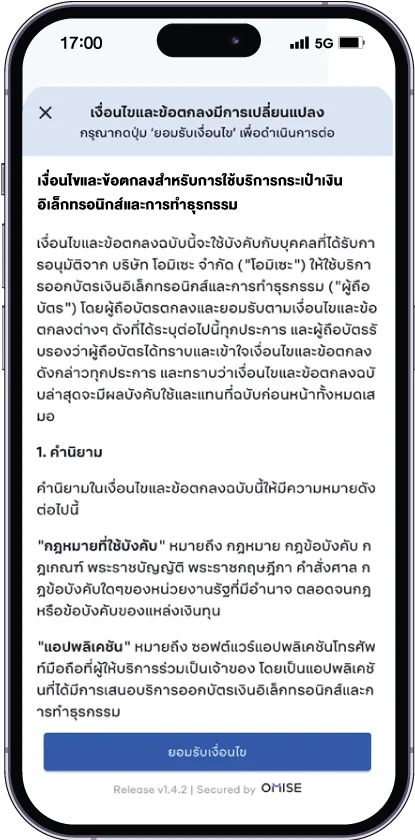 6. อ่านและยอมรับเงื่อนไขการใช้บริการและนโยบายความเป็นส่วนตัวเพื่อลงทะเบียนและใช้บริการกระเป๋าเงินอิเล็กทรอนิกส์