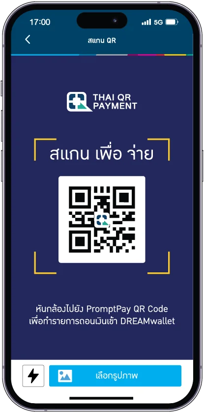 - สามารถนำ DREAMwallet ไปใช้ชำระเงินกับร้านค้า หรือจุดบริการที่รับชำระแบบ QR พร้อมเพย์ ทั่วประเทศ
