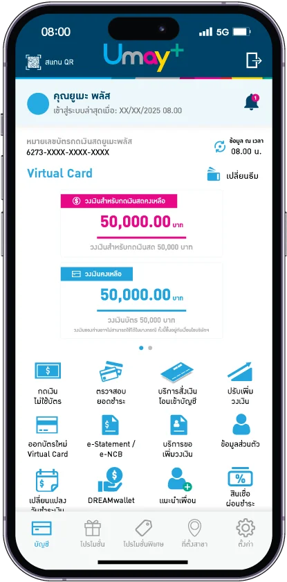 - ลูกค้าต้องได้รับการอนุมัติบัตรกดเงินสดยูเมะพลัสเรียบร้อยแล้ว