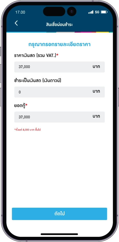 ลูกค้าสามารถเลือกระยะเวลาผ่อนชำระได้ตามแต่ละโปรโมชันของแต่ละร้านค้าสมาชิก
