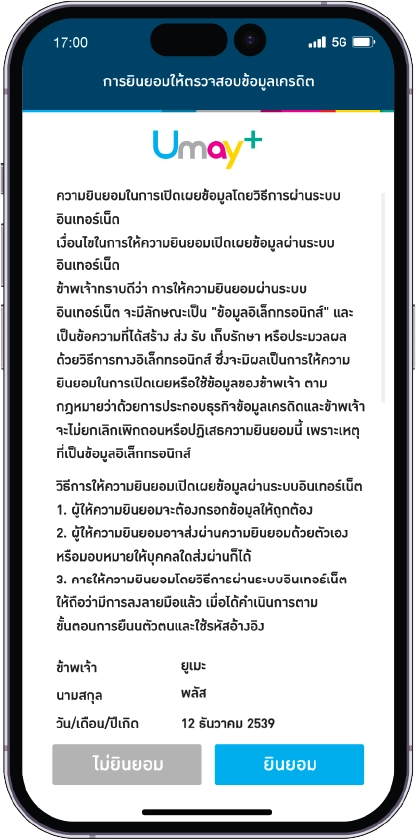 ระบบจะเชื่อมต่อข้อมูลระหว่างยูเมะพลัสกับ AIS หลังจากที่ลูกค้าทำการยืนยันตัวตนที่ AIS Shop เสร็จเรียบร้อยแล้วนั้น เมื่อเข้าใช้งาน Umay+ Application คลิกที่เมนูสินเชื่อผ่อนชำระ จะสามารถทำรายการผ่อนสินค้าต่อได้ทันที